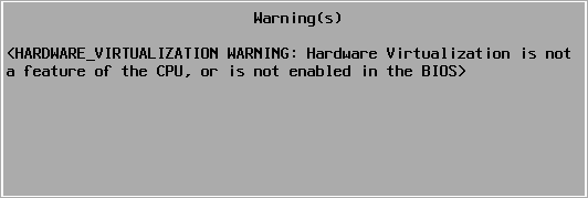 | 9. | If you get a warning about “Hardware Virtualization is not a feature of the CPU” you can ignore it: |